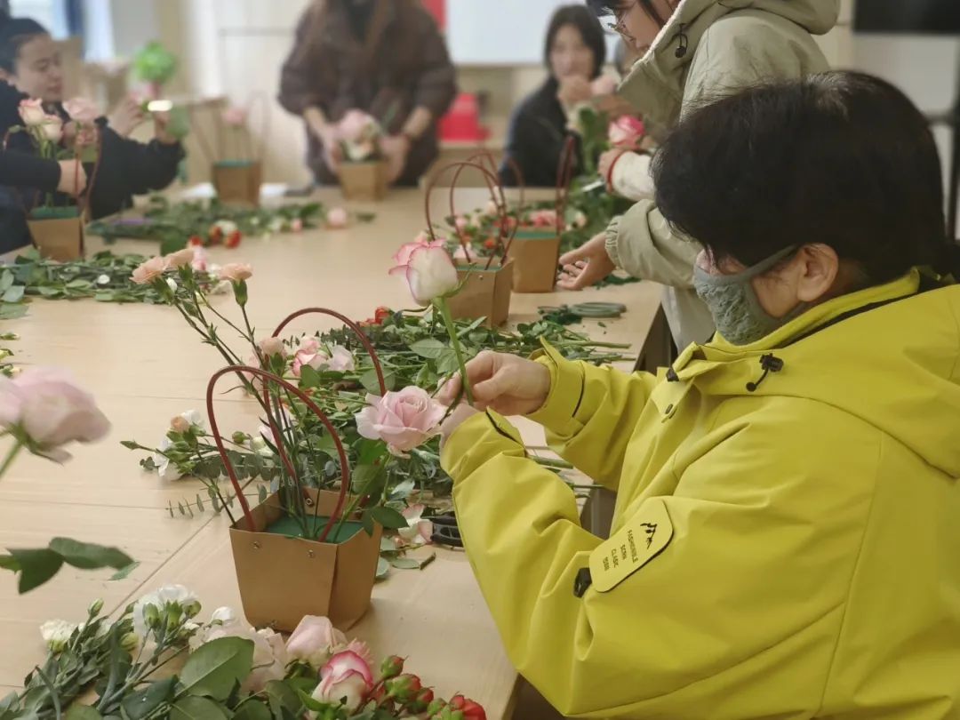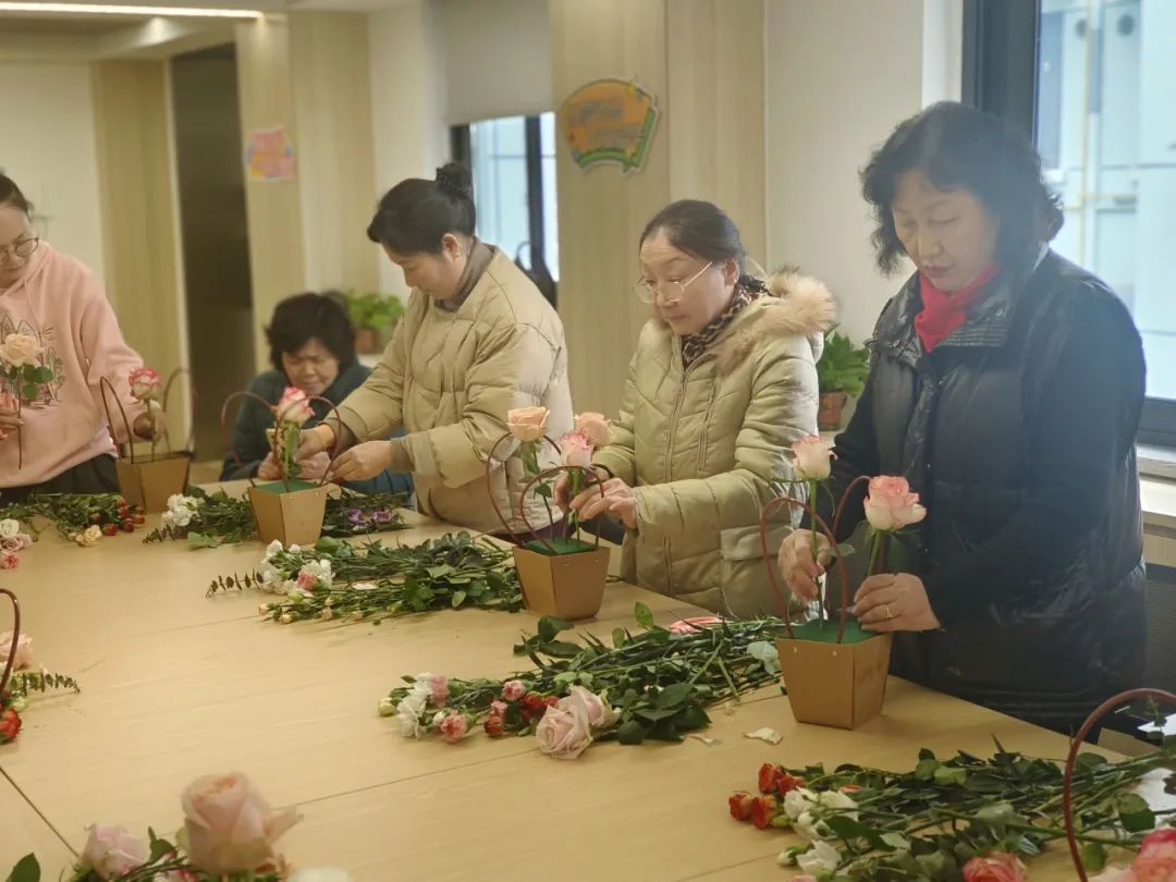 专业花艺老师现场悉心指导,从花枝修剪、色彩搭配,到造型设计,每一个步骤都讲解得细致入微。大家认真聆听,充分发挥自己的创意,将原本普通的花材,变成了一束束造型精美、独具匠心的插花作品。这场活动不仅让大家学到了插花技巧,更提供了一个放松身心、交流互动的温馨平台。在花香与欢笑中,社区女性朋友们度过了一段美好的节日时光,进一步增强了社区凝聚力,展现了女性的优雅与魅力。