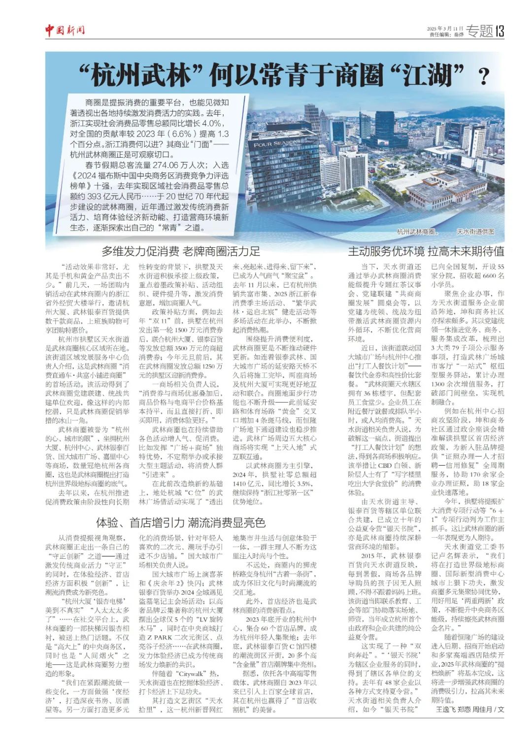 中国新闻报整版报道:“杭州武林”何以常青于商圈“江湖”?