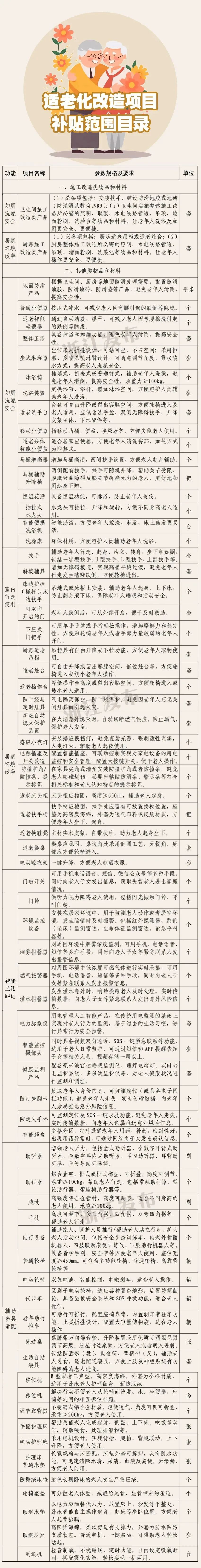 为常住在天水街道的老年人,且本人或子女在天水街道有房产的家庭围绕“如厕洗澡安全、室内行走便利、居家环境改善、智能监测跟进、辅助器具适配”五个方面功能进行适老化改造。