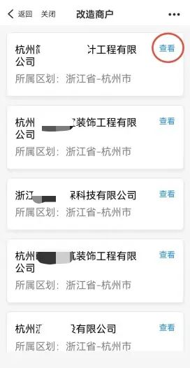 第二步:找到心仪的改造商户,点击“查看”(以页面第1家商户为例);