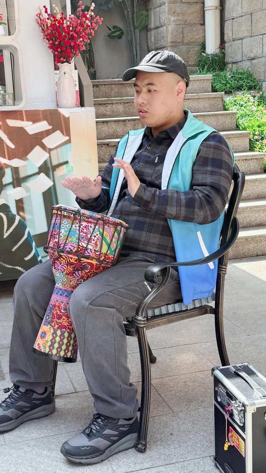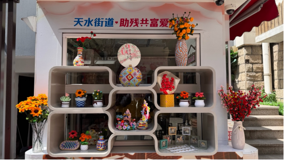 在“星星的艺术长廊”展区,展示了20余幅孩子们的画作。不远处,浙里妈咪工作坊的妈妈们带着自闭症孩子制作的螺钿胸针、扭扭棒盆栽等手工艺品令不少观众赞叹。驻足许久的王女士更是当场下单两件作品。这两年,天水街道残疾人之家通过手工艺品制作销售为残疾人创造就业机会,爱心菜摊和幸福驿站123茶点铺的设置也为残疾人提供更多就业选择,在减轻家庭和社会扶养压力同时,还激发社会正能量,吸引更多人关注残疾人事业。