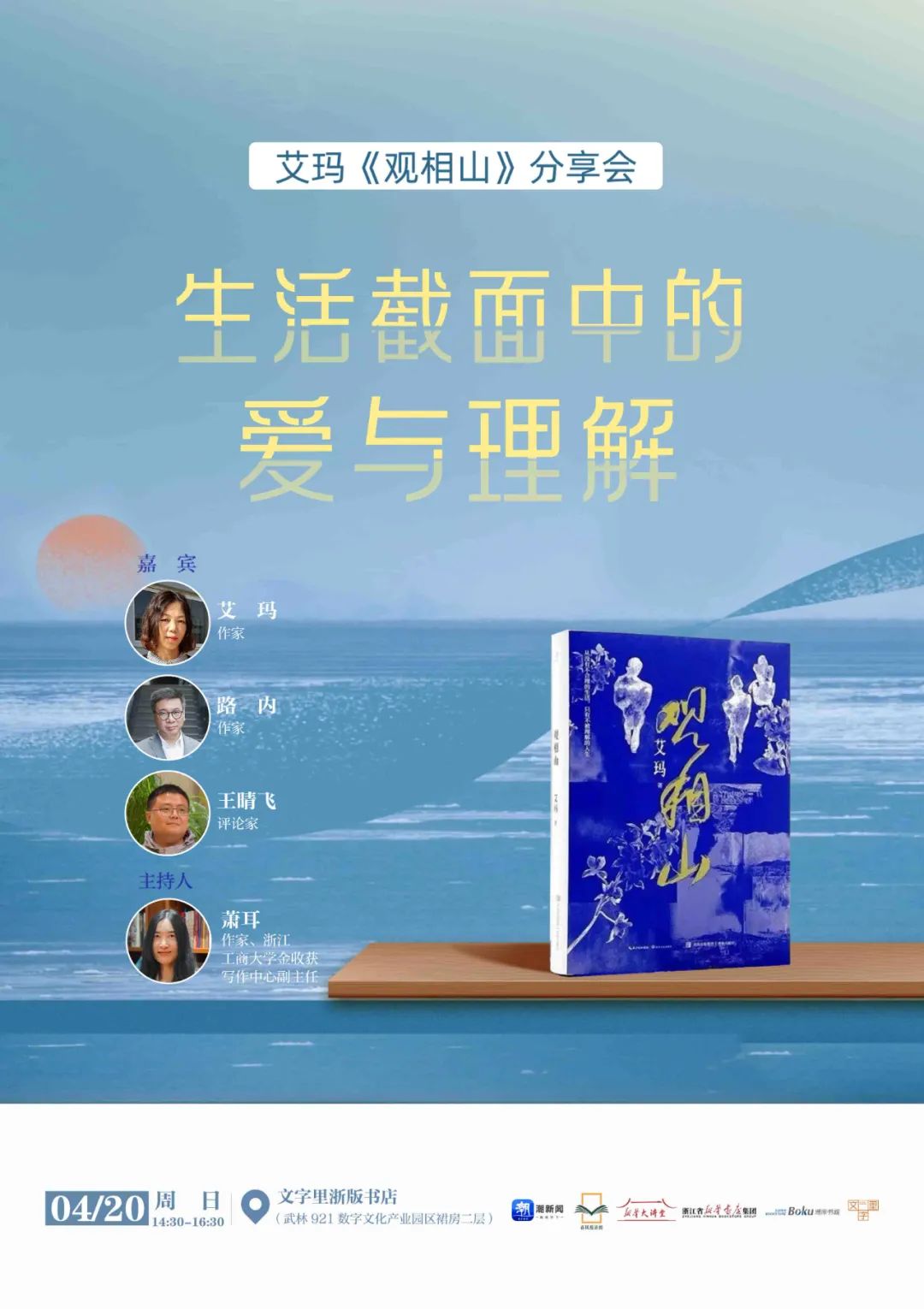 4月20日14点30分,钱报读书会邀请作家艾玛,在文字里浙版书店(武林921数字文化产业园区裙房二层),以“生活截面中的爱与理解”为题做一场分享会。
