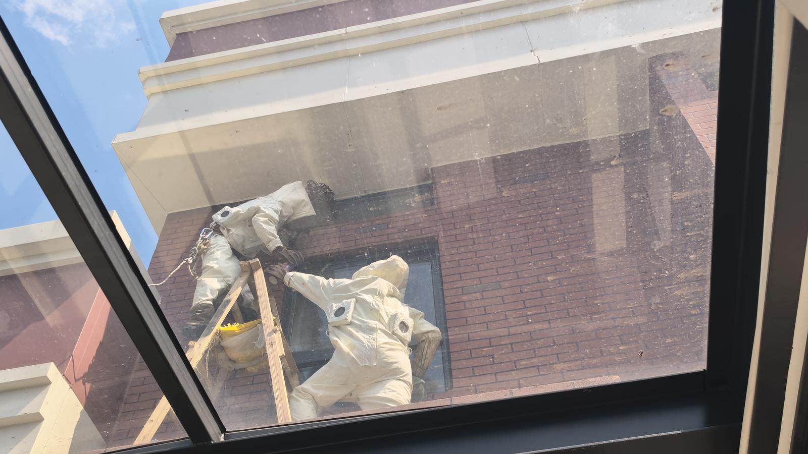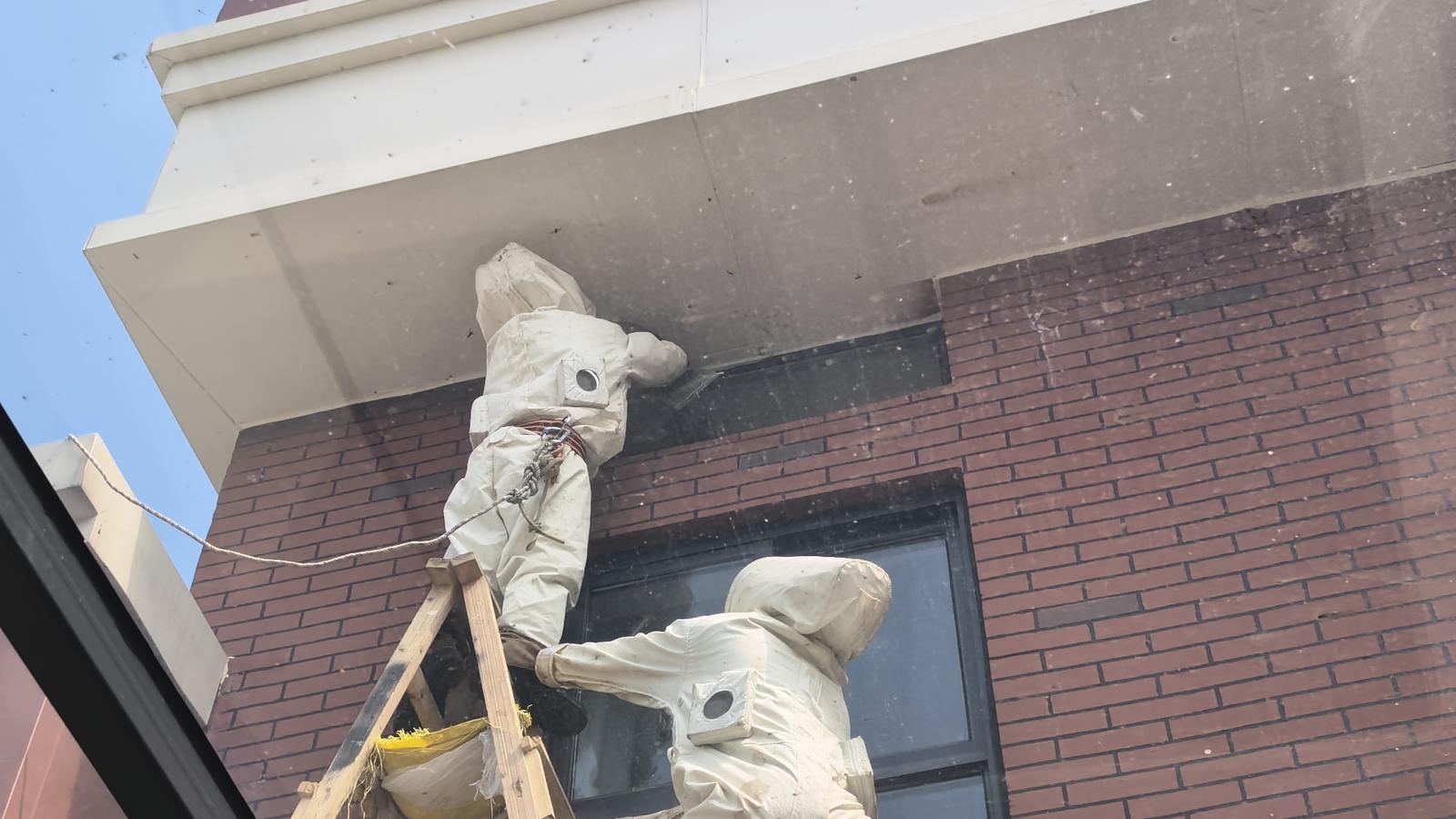 小学惊现马蜂窝 消防员紧急处置除隐患