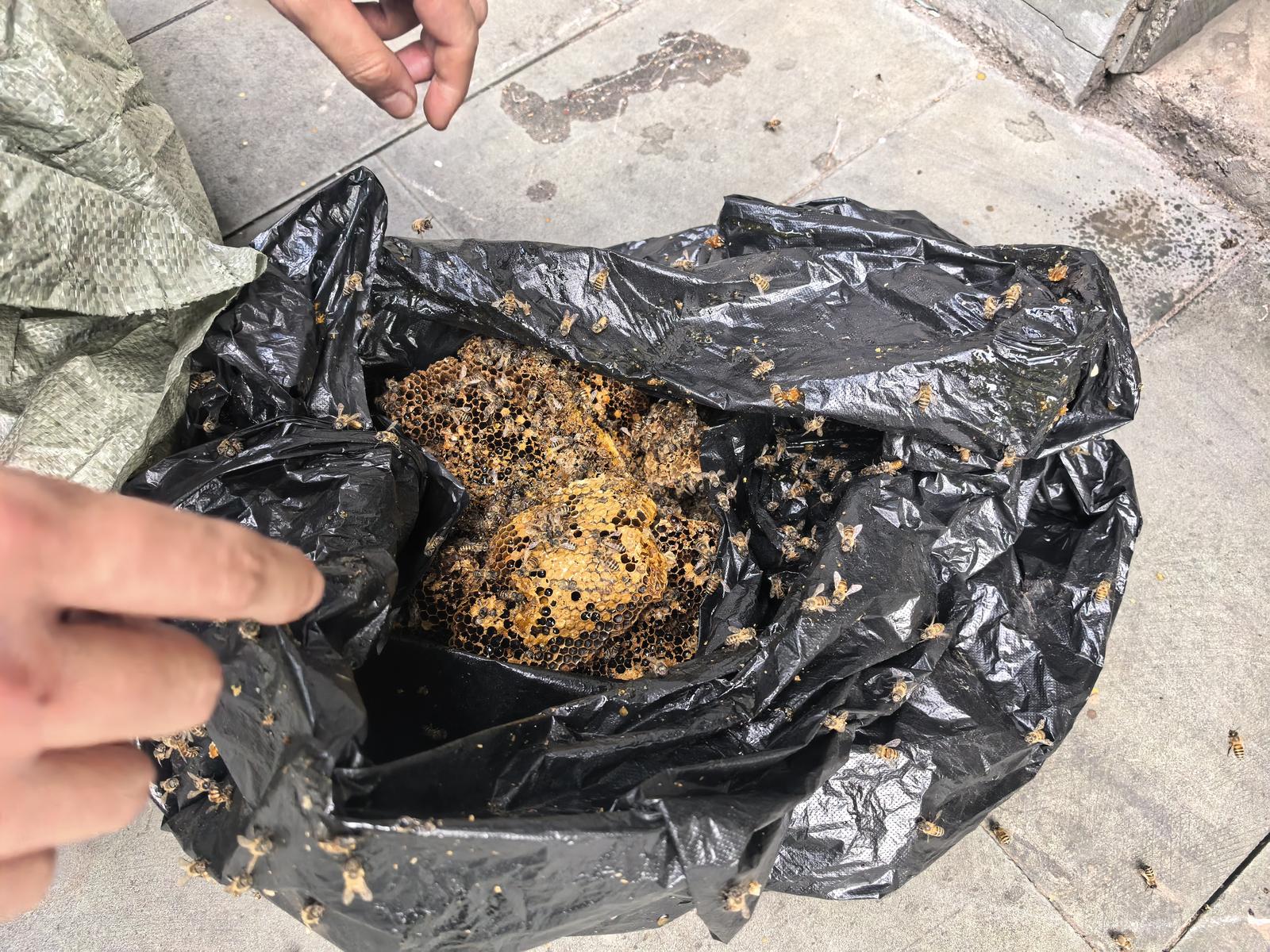经过几分钟专业操作,蜂窝被成功摘除。为杜绝隐患,消防员随后对现场进行全面检查,喷洒杀虫剂清除残留蜜蜂和虫卵,确认无安全风险后,方才收整器材返程。