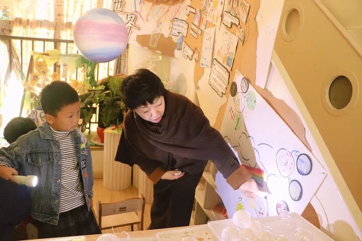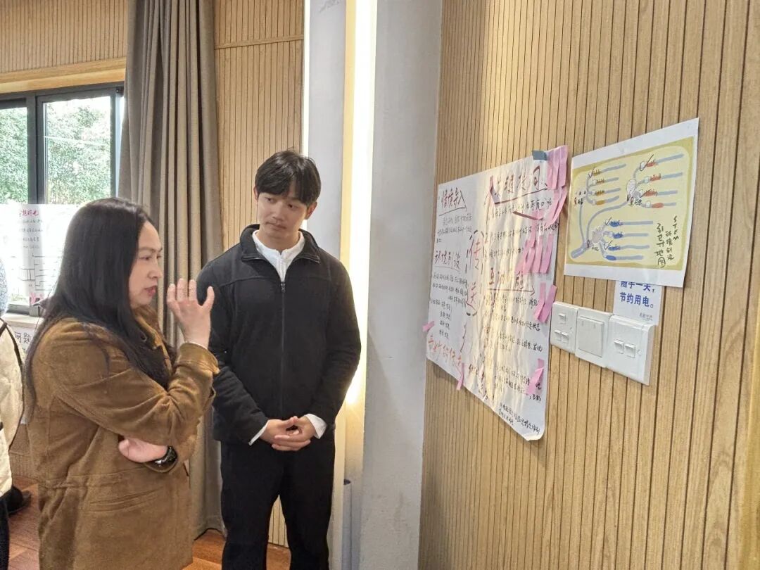你最喜欢的STEM环境是怎么样的?从沉浸式环境参访开始,教师们走进班级,走进班级区域,寻找STEM元素与游戏场景的融合细节,并随时用镜头进行捕捉。分享环节,老师们围绕“为什么选这张照片”“它如何支持幼儿探究”展开热烈讨论,在材料开放性、空间互动性等维度的交流碰撞中,对“可看、可玩、可思”的STEM环境有了具象感知。