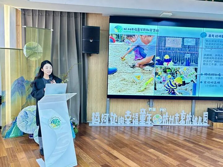童旺老师围绕具象感知的STEM环境,从工程生成背景展开,结合路线规划墙、材料试验区、通渠点子库等具体实践,阐释如何通过动态调整沙水区环境,并提炼出STEM环境创设思考地图,为后续体验式研修带来思考与实践支架。