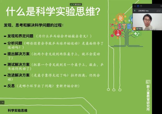 新儿童教育研究院所长侯宇岚带来线上讲座《幼儿园教师STEM赋能与活动设计》,聚焦STEM理念下科学活动与工程活动的有效组织。课程系统解析如何设计符合幼儿认知特点的探究式科学活动,以及如何引导幼儿经历完整的工程设计流程,为教师将STEM理念转化为日常教学实践提供清晰路径与方法支持。