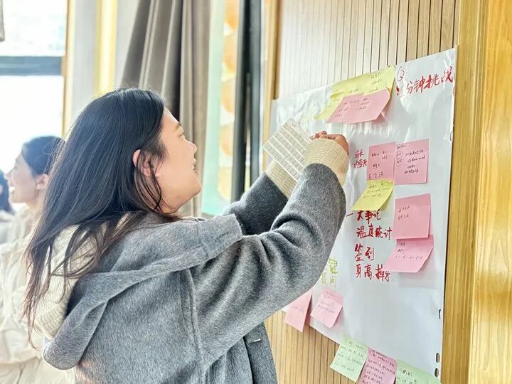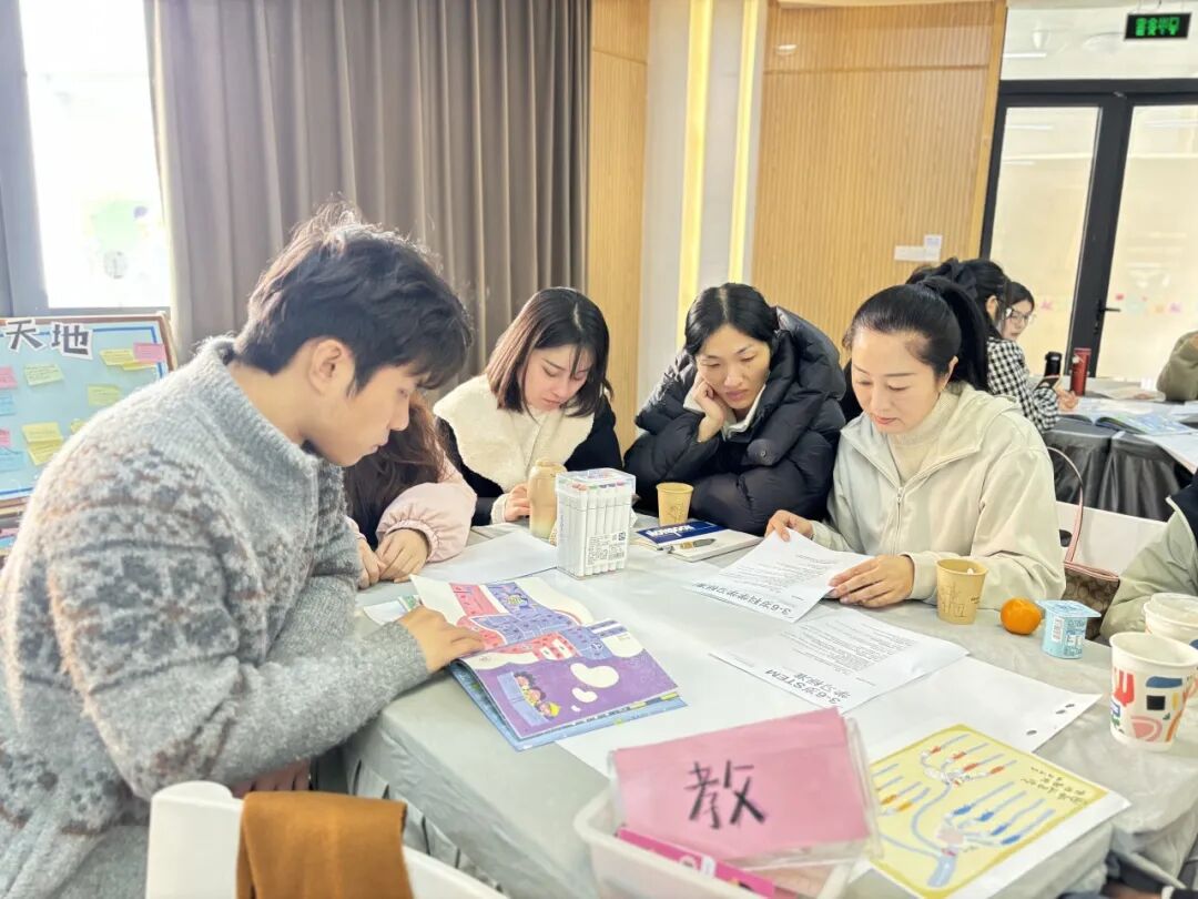 张丽老师带领老师们共读绘本《流动》,以流动的多元性展开体验式教研。各小组结合绘本灵感设计并展示STEM环境方案,参与者如同漫步艺术画廊,在彼此别出心裁的创意中激发思维碰撞。这种开放、互动的形式,不仅让灵感随“流动”主题自然生发,更让每位教师从被动听讲转变为主动共创,真正成为知识的建构者与分享者。