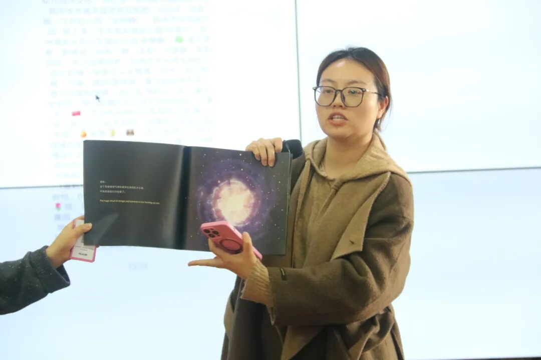 “如何借助技术力量打破传统探究的局限、拓展幼儿学习的深度与广度?”蓓蕾集团金环园长以问题开篇,带领老师们开启技术赋能STEM教育的探索。本场先以《太阳的诞生》科学绘本为切入点,大家共同分析绘本,聚焦“如何让绘本高清图片拟人化”“怎样用技术突破教学难点”等问题展开讨论并进行分享。