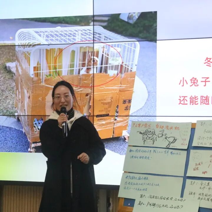为帮助教师深入理解STEM活动中“设计思维”的核心理念,工作坊特别设置“世界咖啡”形式的参与式教研。盛于蓝老师引导教师们围绕“为小兔子设计一个既温暖又能够随时移动的家”、“设计一个能提醒喝水的水杯”等真实用户需求,分组展开构思与探讨。