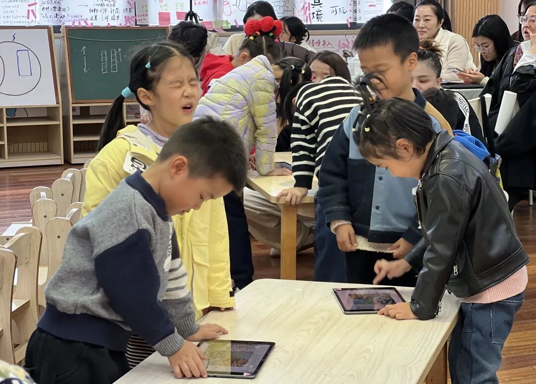 随后,范紫麟老师现场演示希沃白板、豆包、美图秀秀等数字工具的应用方法,引导老师们带着“运用了哪些技术”“解决了哪些教学重难点”的思考,深入观摩后续教学活动。《昆虫也会捉迷藏》中,范老师以幼儿对昆虫隐身现象的好奇为探究起点,巧妙引入数字化工具,支持孩子们从观察走向验证,从表象走向原理,实现从“发现”到“探究”的跨越,展现了技术在科学思维培养中的赋能作用。