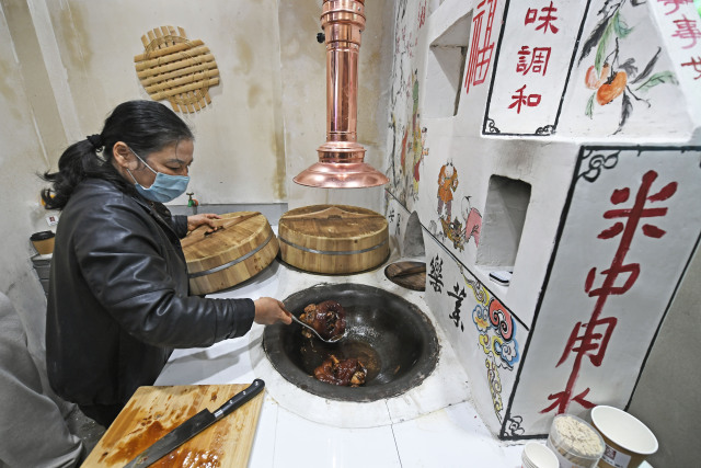 最令人惊喜的,是场馆内那座由老灶头师傅按传统工艺砌筑的“活灶”。不同于常规展馆的静态展品,这座土灶能真正点燃柴火、烹制菜肴。开馆当天,石塘社区的居民用土灶现场做起了红烧蹄髈,一口老底子的味道,勾起了不少参观者的回忆。