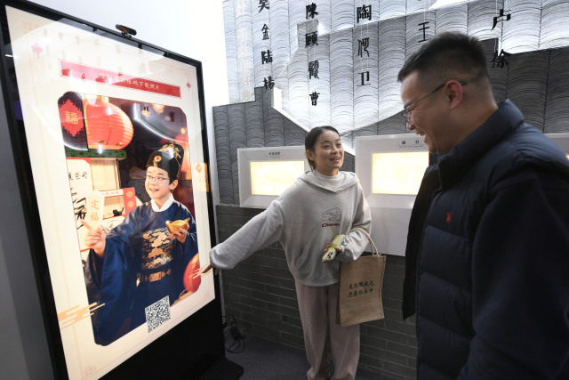 步入一楼展厅,图文展板与老物件静静诉说着灶画的发展脉络和半山地区的文化底蕴,将人们的记忆拉回老灶台炊烟袅袅的旧时光。3D投影技术的加入,则让古老民俗与现代科技碰撞出奇妙火花,参观者可通过触屏交互“亲手”在虚拟灶头上勾勒灶画图案,沉浸式体验这项非遗技艺的创作乐趣;AI设备还能实时合成参观者的“灶君”形象照,扫码即可下载留念,趣味十足的互动体验大大提升了场馆的“可玩性”。