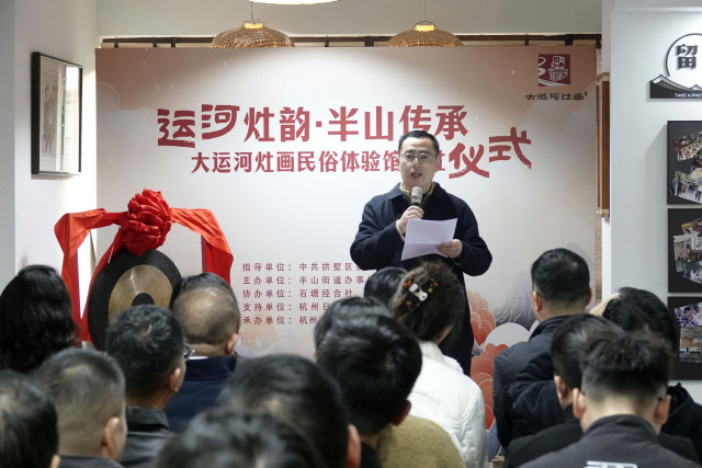 12月9日,随着一声清脆的锣响,位于拱墅区半山街道石塘社区的大运河灶画体验馆正式开馆。