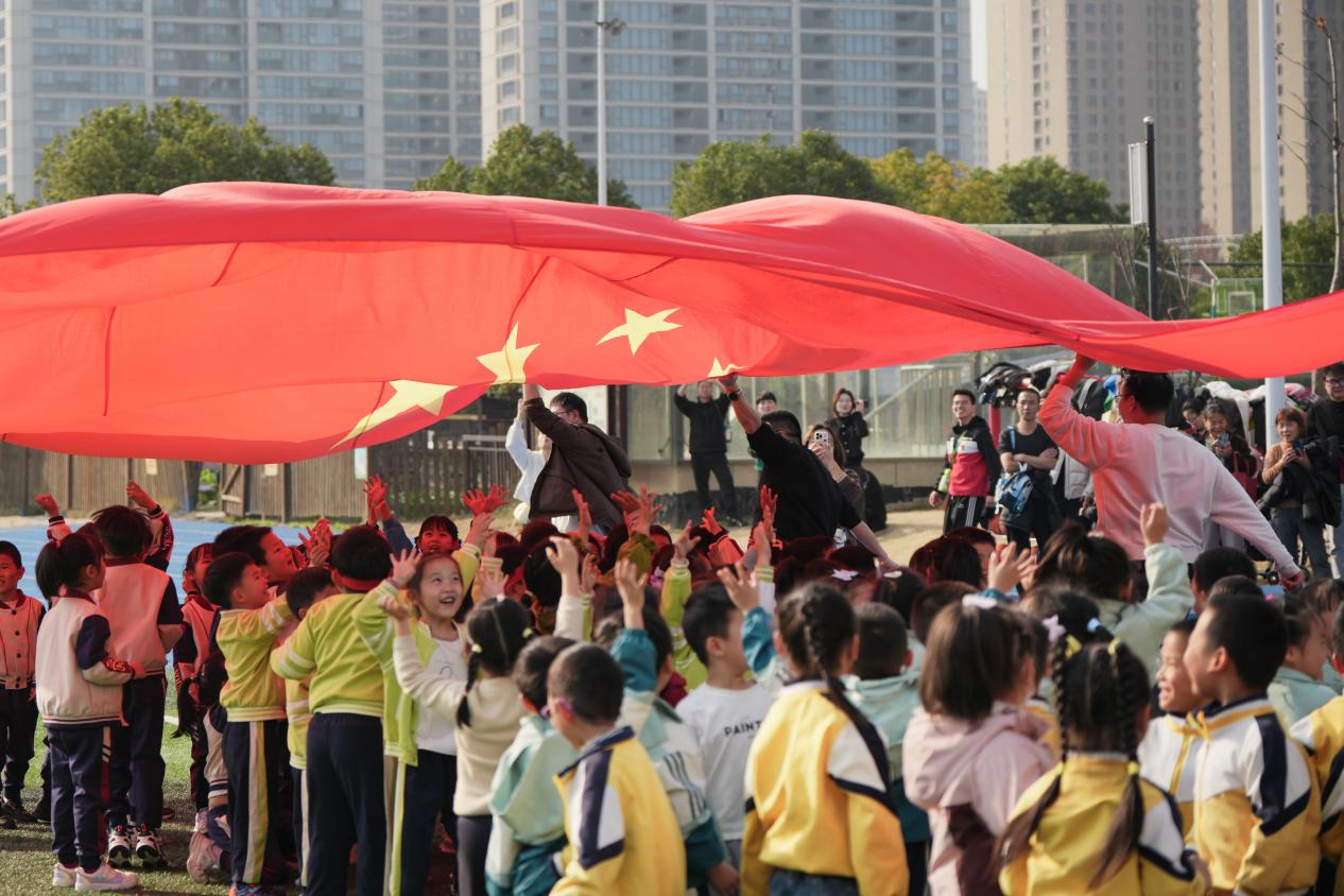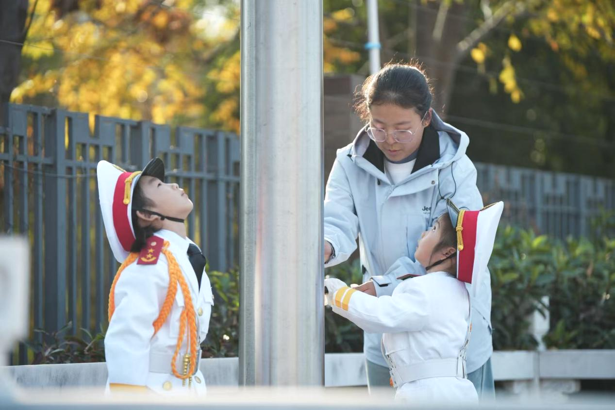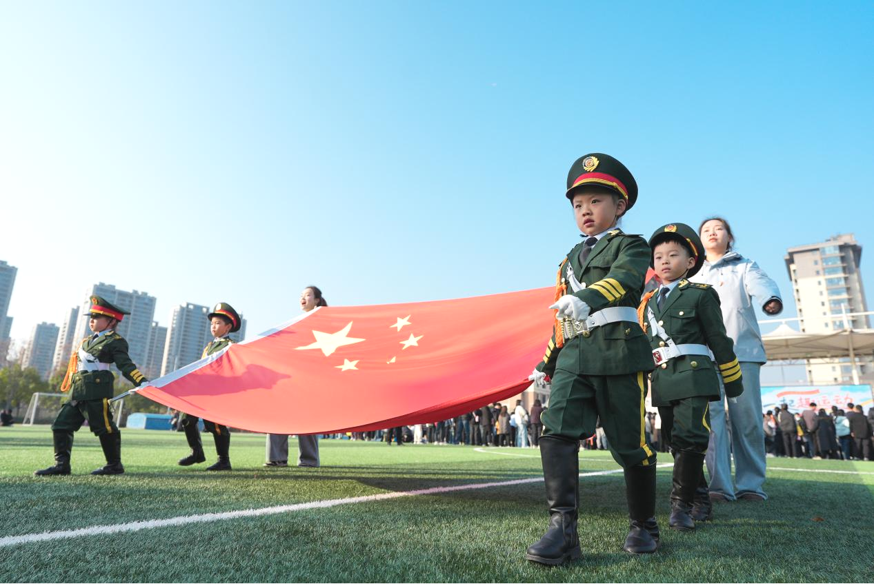 活动伊始,庄严的升旗仪式正式举行。担任升旗手与护旗手的“小橙子”们身着整齐服装,虽然动作还带着点稚嫩的可爱,却格外认真。伴随着雄壮的国歌声,五星红旗缓缓升起,全体师生及家长肃立致敬,并行注目礼,大家一同轻声跟唱国歌。这场庄重的升旗仪式,在潜移默化中为孩子们上了一堂生动的爱国主义教育课。