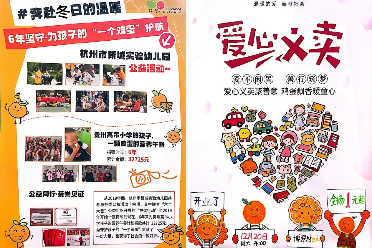 为助力贫困山区儿童健康成长,让爱心跨越山海传递温暖,自2019年起,杭州市新城实验幼儿园党支部主动牵头,带领全园师生积极响应“一个鸡蛋”公益计划,持续开展爱心义卖活动。活动以公益实践为载体,在孩子们心中播撒爱的种子,潜移默化地培育其关爱他人、奉献社会的良好品行。上周六(12月20日),一场充满温情的爱心义卖活动如期举行,将暖意源源不断送往贵州山区小朋友的心中。