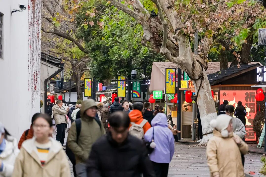 从富义仓走到江涨桥、卖鱼桥一带,逐渐回归到最朴素的生活场景。这里没有刻意营造的节庆布置,却有着最真实的年味:居民楼的窗户里亮起灯光,楼下的小店忙着备货,熟悉的邻里在路口寒暄几句,让年的气息既有生活的温度,也有岁月的分量。