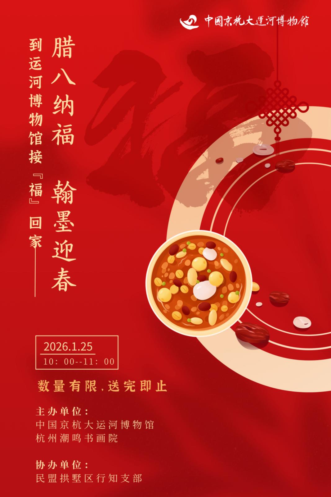 “腊八纳福 翰墨迎春”——到运河博物馆接“福”回家!依托腊八传统佳节,结合运河文化特色,通过送福、写春联等互动体验,感受“家”的温暖与“年”的临近。