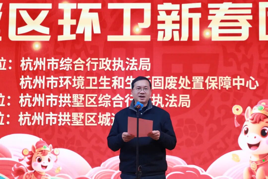 杭州市综合行政执法局党组成员、副局长杨敏在致辞中表示:“环卫工人是城市中最美的风景线,你们用辛勤汗水换来了城市的整洁美丽。在新春佳节来临之际,我代表市综合行政执法局向大家致以最诚挚的问候和最美好的祝福!”