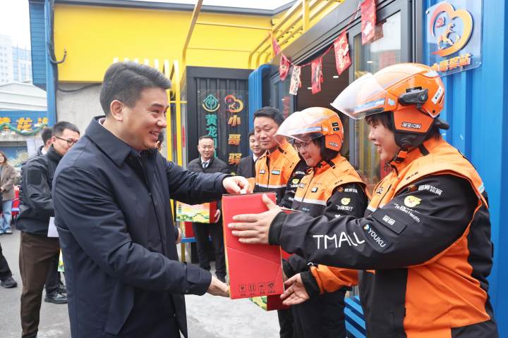 2月13日上午,西湖区委书记董毓民带队看望慰问新就业群体。