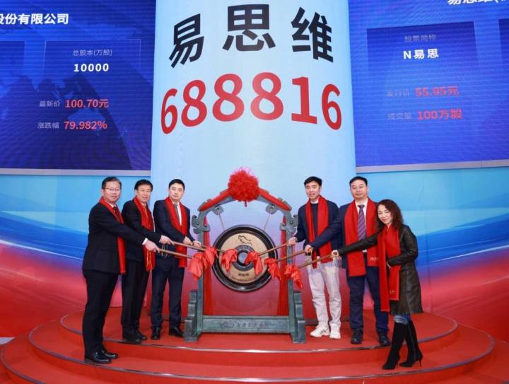 2月11日上午,易思维(杭州)科技股份有限公司在上海证券交易所科创板挂牌上市,成为杭州高新区(滨江)第75家上市企业。滨江区委书记郑迪与易思维董事长郭寅等嘉宾共同敲锣。