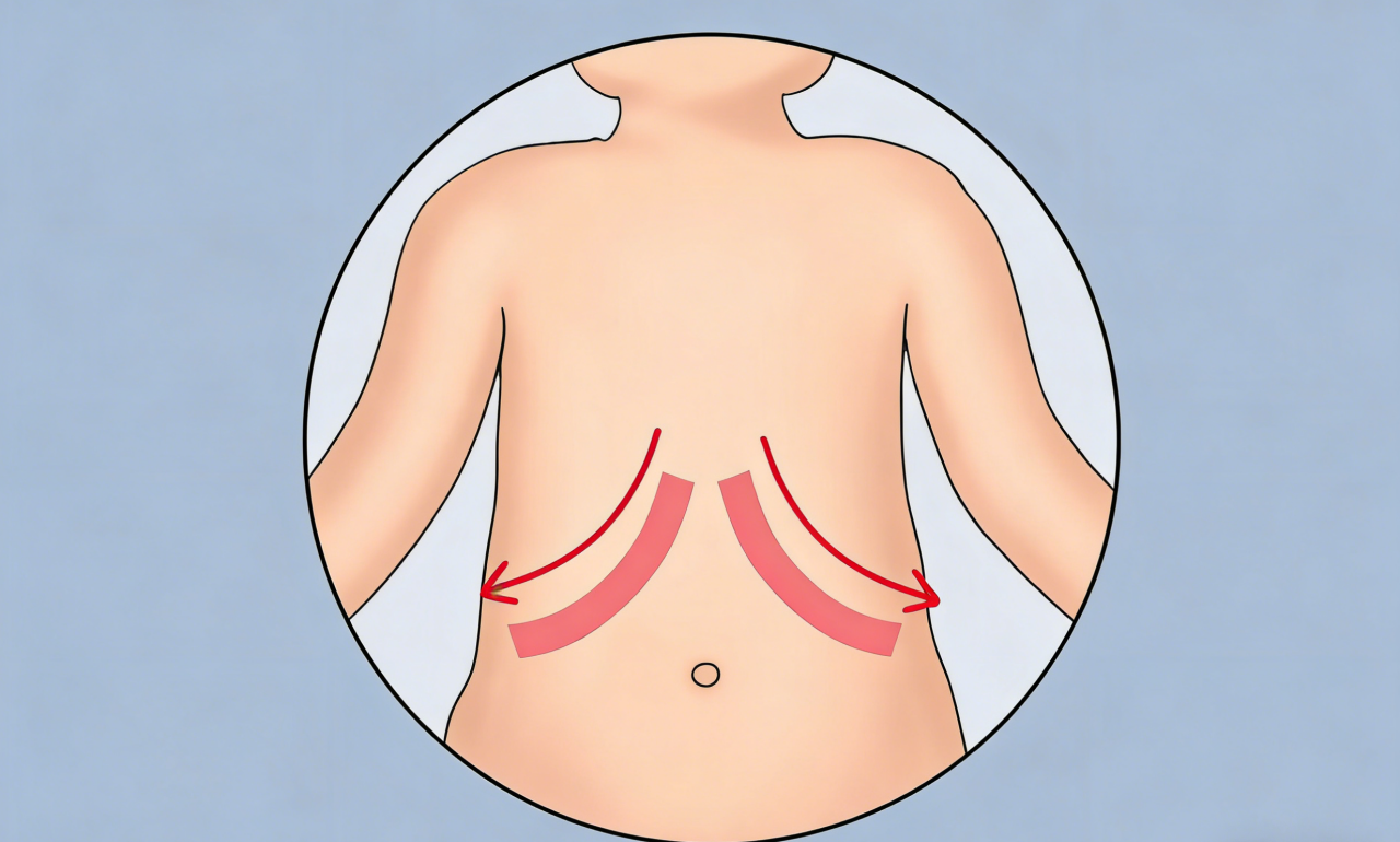 方法:取平卧位,沿肋弓角边缘,用双手拇指指腹向两旁推,动作一定要轻、慢、连贯,每次推50-100次。