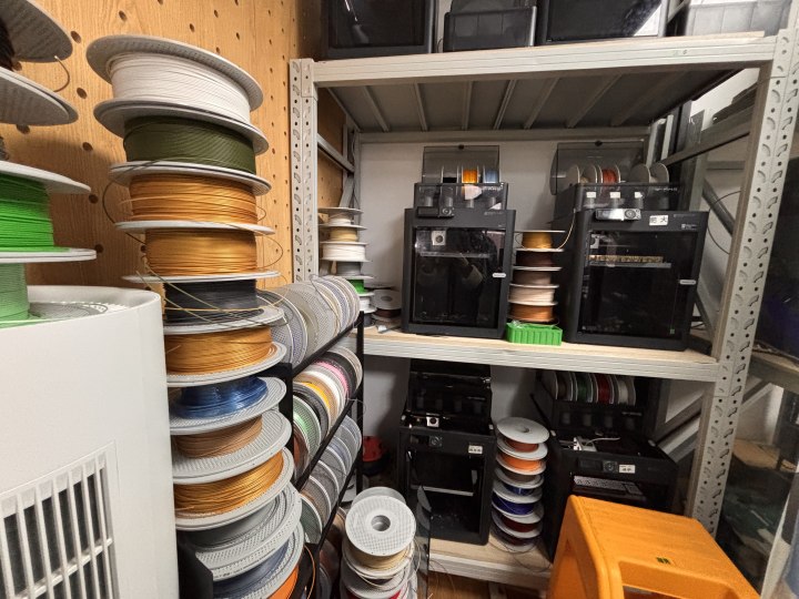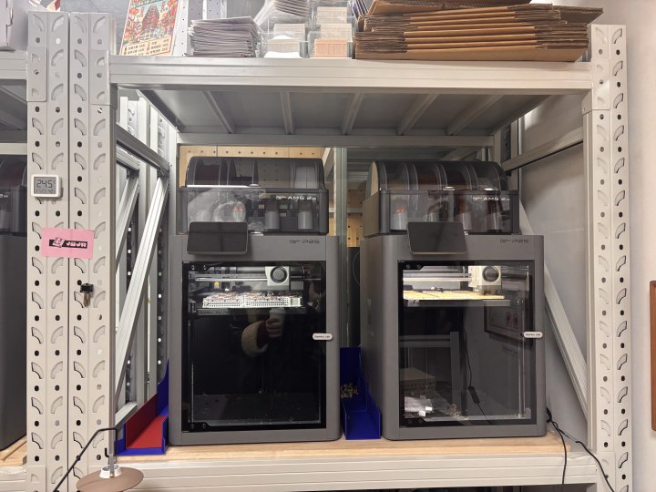 一进门,6台3D打印机正在不间断工作,喷头吐出的细丝在平台上层层堆叠,逐渐勾勒出精致的轮廓。公司的“拳头”产品——博物馆联名小恐龙骨架、3D打印的“武康大楼”就摆在办公桌上,在50平方米的空间里,栾文磊和同事的5个办公位就显得有些局促了。