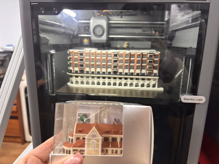 栾文磊拿出一个“武康大楼”的3D打印模型展示:“你看这个窗户,我们可以还原大概1厘米的窗柩细节,我们的3D打印机可以实现复杂的镂空结构、曲面造型,甚至是可活动的关节,无论是文物的精细纹理,还是建筑的复杂构造,都能完美还原。”