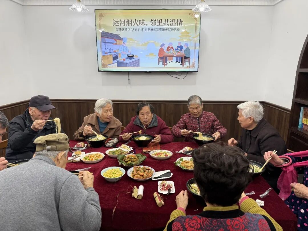 近日,拱墅区长庆街道新华坊大运河社区食堂内菜香四溢、笑语盈盈,一场以“运河烟火味,邻里共温情”为主题的“坊间厨神” 厨艺征集暨敬老贺寿活动温情启幕。新华坊社区以美食为纽带,面向居民征集运河沿线家常味道,同时邀请社区80岁以上老人齐聚现场,让美食比拼的乐趣与敬老贺寿的温情相互交融,为老人们送上别样的温暖。
