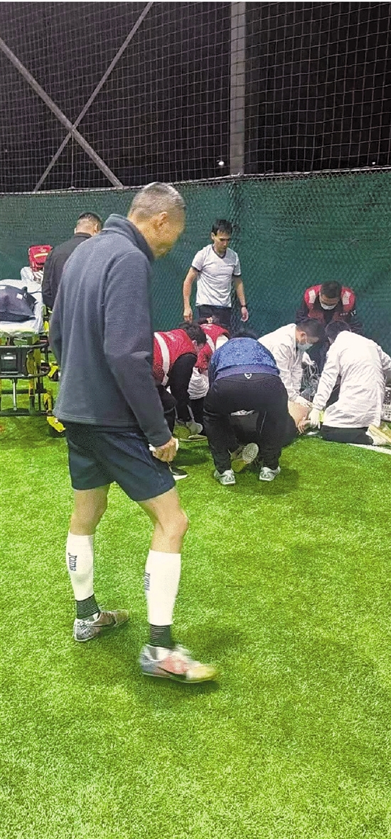 前几天,这样的事情就在杭州一个普通的足球场发生了。庆幸的是,那个倒下的人遇上了一群热心球友,杭州市拱墅区委宣传部工作人员黄文者正是救人者之一。