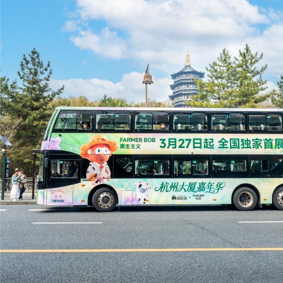 此外,3月27日至29日嘉年华期间,现场还将轮番上演数十场趣味互动活动:星愿点亮仪式、宠物友好派对、Farm Game套圈圈、惊喜盲盒机、萝卜空投记等潮玩互动惊喜不断,好玩出圈,让消费者在逛购之余,尽情解锁沉浸式玩趣体验,嗨享春日限定欢乐。 与此同时,杭州大厦包下520路双层巴士,变身“FARMER BOB痛车”,成为街头巷尾的“话题焦点”。3月28日-3月29日,4月4日-4月5日,这趟免费接驳专线,载着春天,串联起这座城市最美的地标与风景。