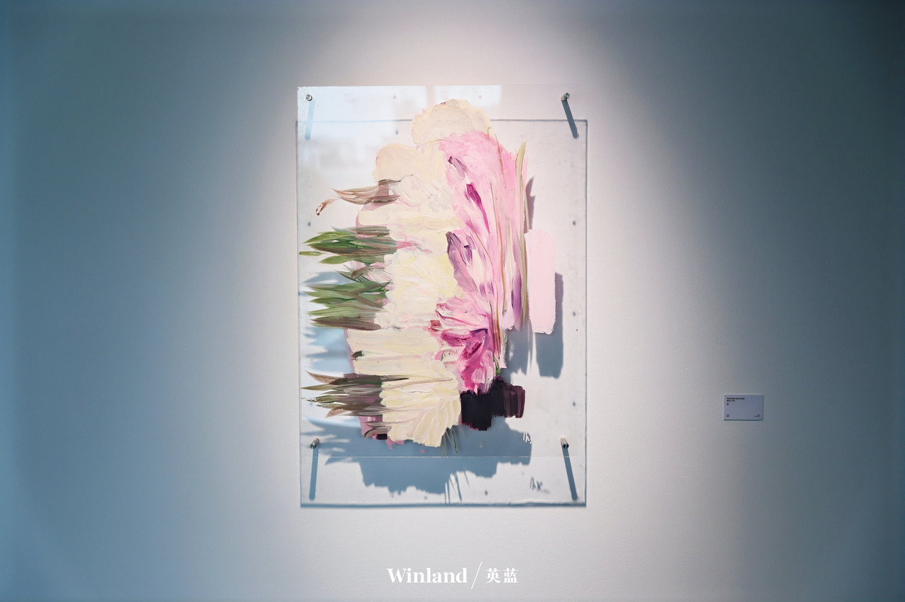 女性艺术家的创作则为展览增添了细腻而坚韧的力量,成为展厅中一抹亮眼的色彩。娜塔莉・科尔特携亚克力作品《绽放》参展,她从繁茂的植物世界中汲取灵感,以柔韧且饱含生命力的笔触勾勒自然的肌理,借此探讨适应与生长的生命哲思,她对红色的运用内敛而平静,成为其灵魂表达的独特象征。
