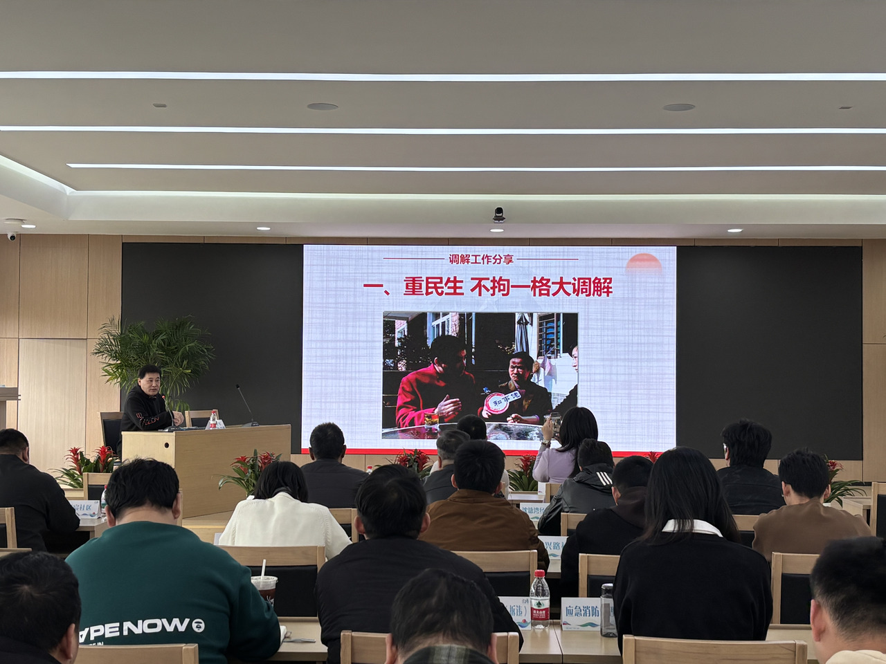 专题授课环节,两位专家带来满满实战干货。朱学军法官围绕《如何运用法治思维方式解决社会矛盾》,深度解读大调解工作理念,结合真实司法案例,拆解基层矛盾化解的法律适用、风险防控与柔性处置技巧,分享一线调解实战经验。